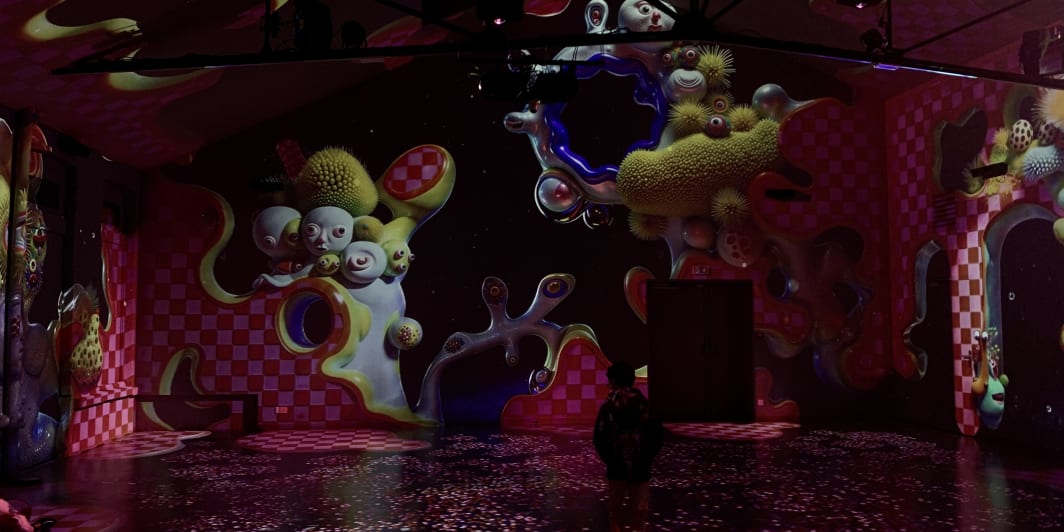 Puis, dans le court-métrage Deep Blue, le public est invité à participer. Alors petits et grands se lèvent. Les projections réagissent aux mouvements. Des confettis colorés s’éparpillent au rythme des pas. Chacun devient collaborateur de l’œuvre. « Maman, regarde ! Les couleurs me suivent » crie un petit garçon, émerveillé. Les enfants courent, les adolescents se joignent à eux en riant, et une grand-mère esquisse un sourire en les observant. Chaque génération trouve sa manière d’habiter l’espace, entre fascination, amusement et curiosité.